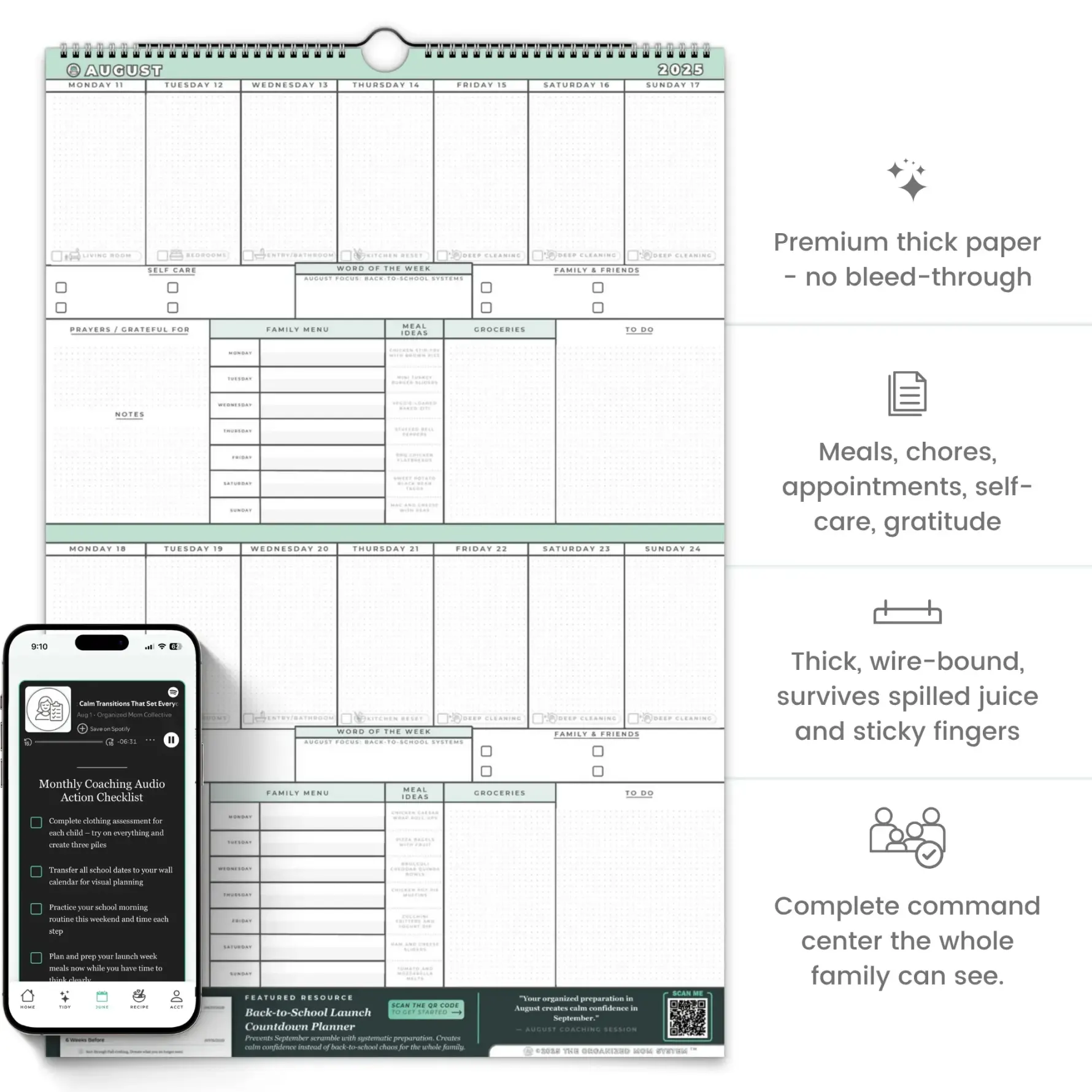 This isn’t another planner. It’s your family’s visual command center where the mental load finally has a home—and a system that makes it all work seamlessly, month after month.